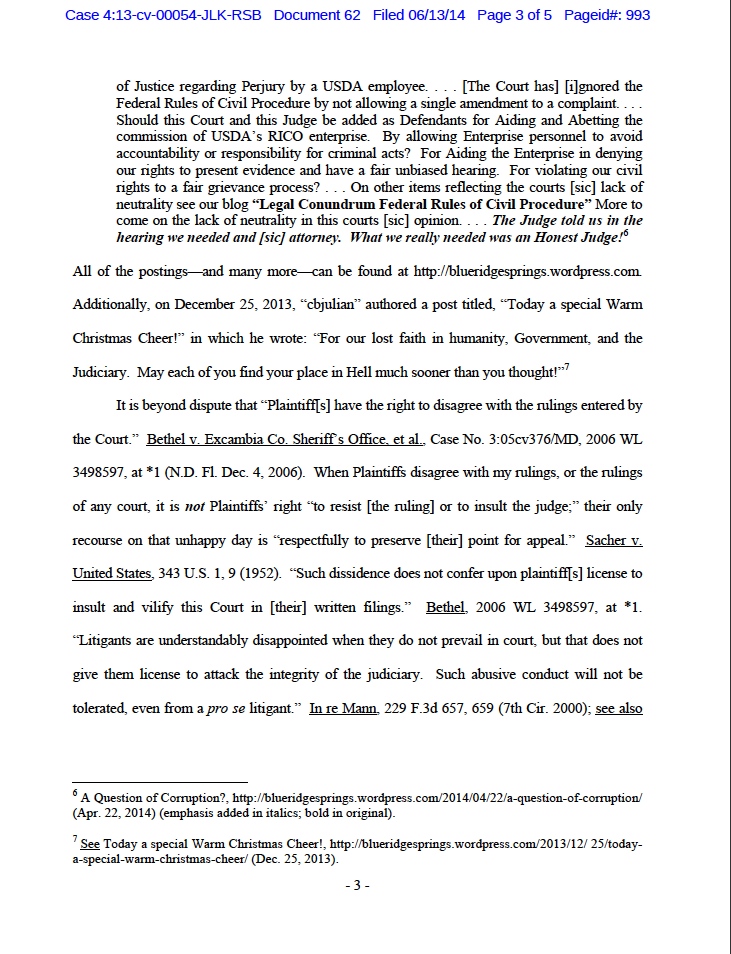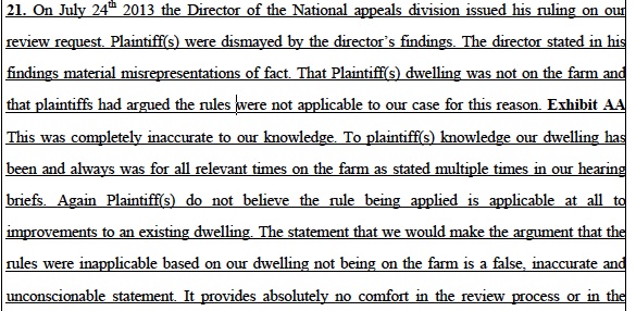No allegation is other than Negligence, Fraud, Mail Fraud, Perjury, Obstruction of Justice, discrimination, denial of service, FCRA violation, and FOIA violations. A conspiracy and a scheme to still constitutional rights. Look again at the paragraph that states USDA is operating a RICO and keep in mind a RICO is defined by the prerequisite of certain crimes. Mail Fraud and obstruction of justice. That a sequence of events and recurring criminal acts make a pattern and a conspiracy is conducted. And as a matter of FACT, this suit was filed on the docket as a RICO charge on day one.