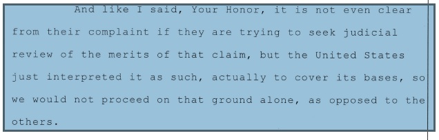 But let’s take a look at what the complaint actually said about judicial review. This is taken directly from the complaint you can view it here see pleading with cover sheer this excerpt is on page 15. Just how could it be stated any more clearly? But the Government did me a favor by assuming that was the intention.